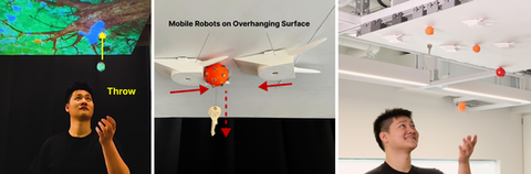 Actuated TUIs that Facilitate “Throwing and Catching” Spatial Interaction with Overhanging Mobile Wheeled Robots