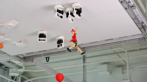Actuated TUIs for Spatial Interaction using Rigging Swarm Robots on Ceilings in Everyday Space